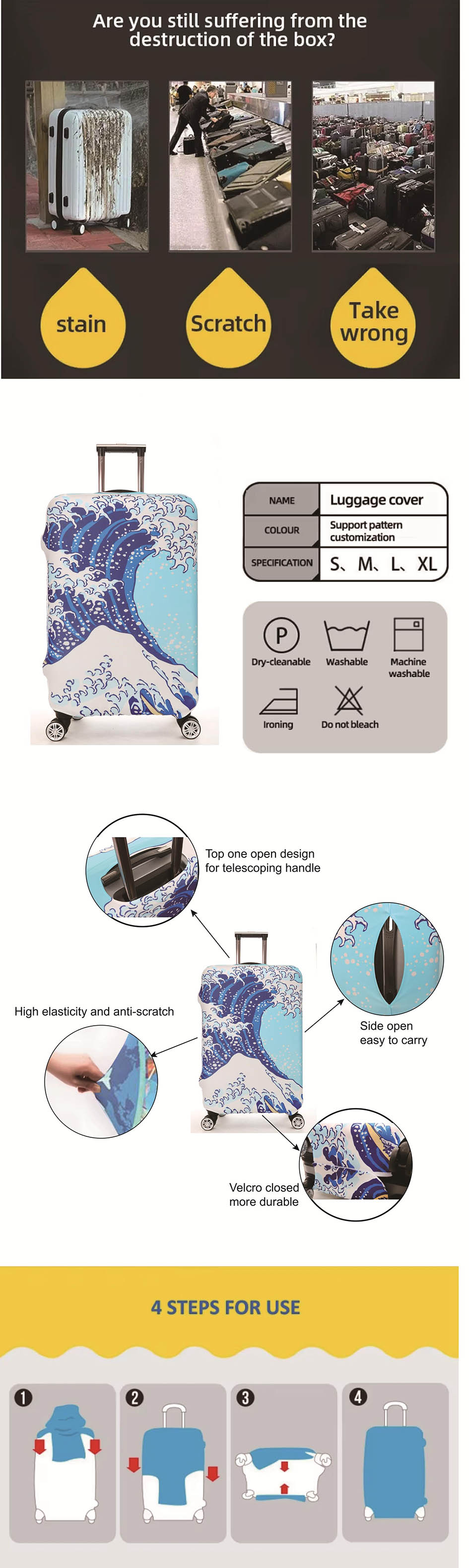 1.?Customized Design and?easy to Identify:?This luggage cover allows users to create a unique and personalized design, making it easy to identify their luggage among others.
